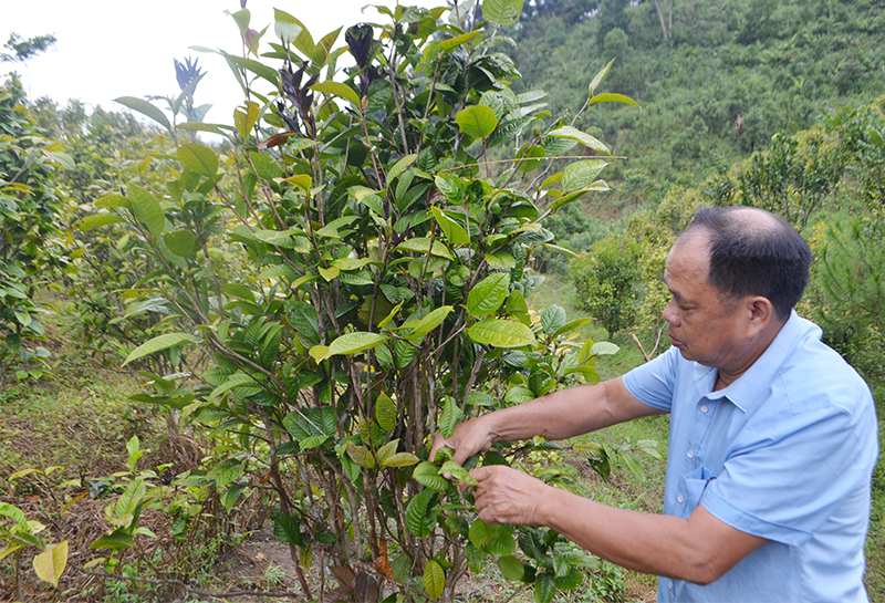 Để nhân rộng diện tích trà hoa vàng, ông Cường còn nhân giống cung ứng cây cho bà con địa phương. Đến nay, vườn trà hoa vàng của gia đình ông Cường đã có hơn 7.000 cây. Sau 4 năm trồng, diện tích trà hoa vàng của gia đình ông đã cho thu hái khoảng 7 tấn lá tươi với giá bán 60.000 đồng/kg. Dự kiến, năm 2020, vườn trà hoa vàng của ông Cường sẽ cho thu hoạch với số lượng khá lớn. Hiện, hoa trà tươi có giá khoảng 800.000-1 triệu đồng/kg, hứa hẹn mang lại nguồn thu nhập ổn định. Không chỉ trồng trà hoa vàng, ông Cường còn trồng 0,8ha ba kích tím và mây, thông, sa mộc, tài lệch. Khu vườn rừng đã mang lại nguồn thu 400-500 triệu đồng mỗi năm.