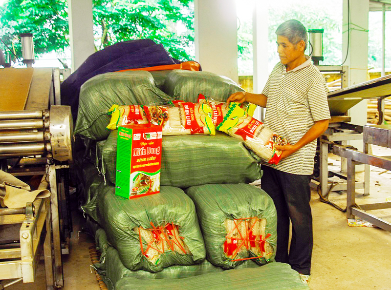 Bên cạnh đó, ông không ngừng chủ động nghiên cứu, học tập để bổ sung kiến thức và tìm đầu ra ổn định cho sản phẩm. Năm 2014, gia đình ông cùng với 7 hộ khác trên địa bàn cùng thành lập Hợp tác xã Sản xuất miến dong. Qua đó, các thành viên cùng nhau chia sẻ kinh nghiệm sản xuất, hỗ trợ nhau về vốn, tự chủ nguồn nguyên liệu, nâng cao năng suất, chất lượng sản phẩm. Miến dong của Hợp tác xã hiện được giới thiệu, tiêu thụ tại các Hội chợ OCOP của huyện, của tỉnh.