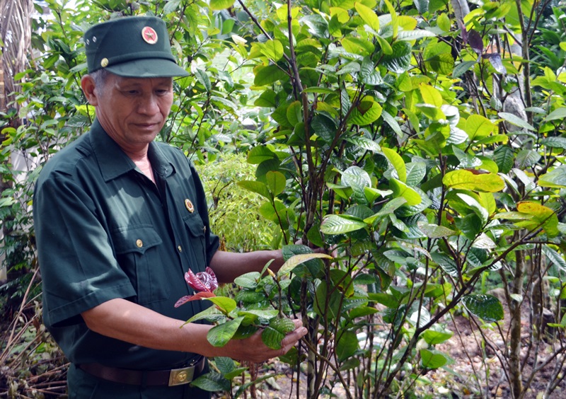 Lúc rảnh, CCB Vũ Quang Hải chăm sóc vườn cây của mình.