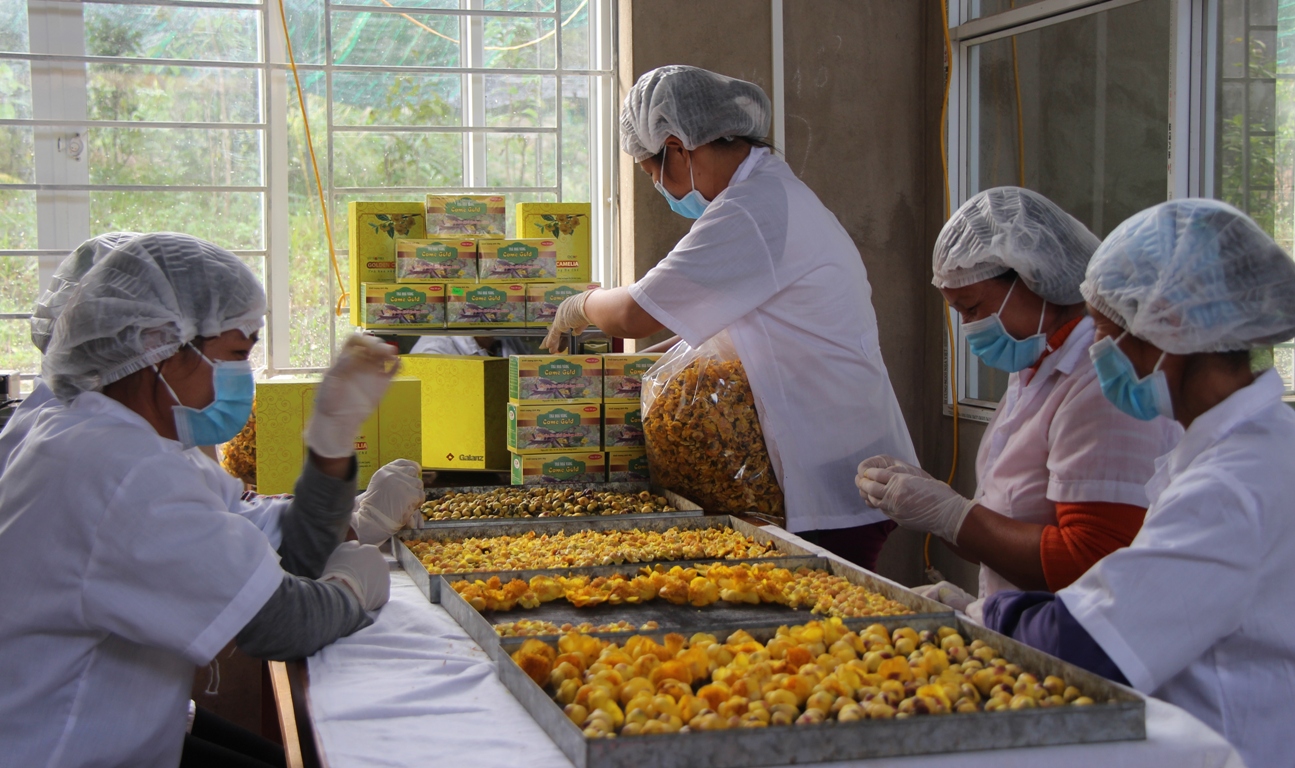 | Công nhân Công ty CP Kinh doanh lâm sản Đạp Thanh (xã Đạp Thanh, huyện Ba Chẽ) chế biến trà hoa vàng. Ảnh: Bình Minh (CTV) |